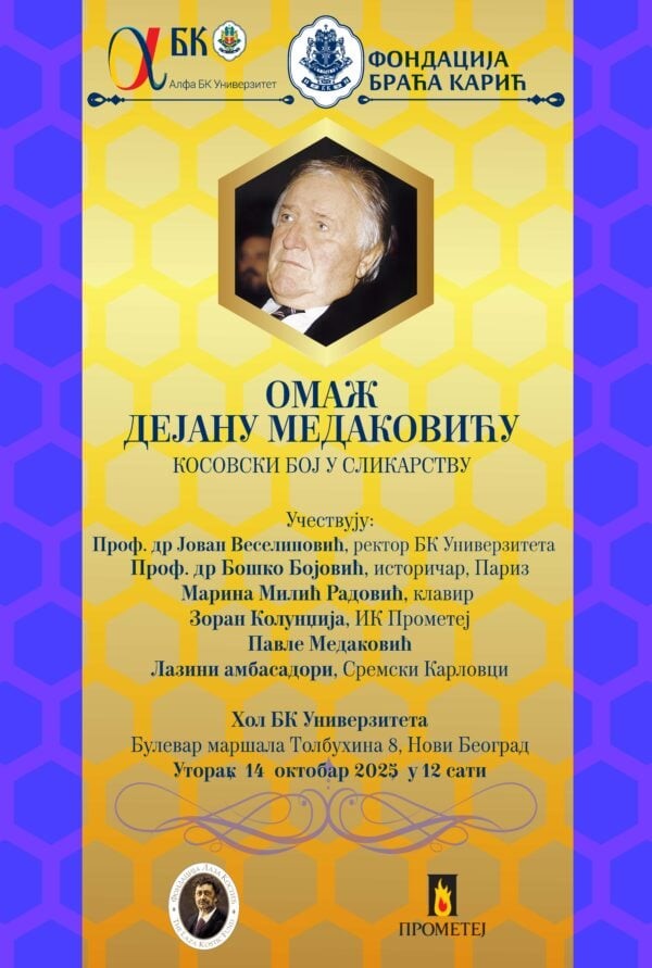 У посебно уприличеном програму под називом „Омаж Дејану Медаковићу“, Фондација Браћа Карић, издавачка кућа „Прометеј“ и Фондација „Лаза Костић“ ће одати поштовање и захвалност Дејану Медаковићу, интелектуалном горостасу импозантног дела, једном од највећих умова Србије двадесетог века.
