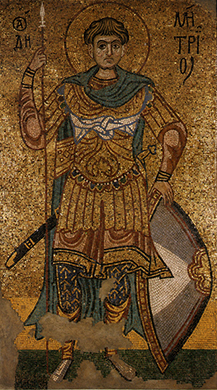 Овај славни и чудотворни светитељ роди се у Солуну од родитеља благородних и благочестивих. Измољен од Бога од бездетних родитеља, беше однегован с великом пажњом. Отац му беше војвода солунски. Кад он умре, христоборни цар Максимијан постави Димитрија на његово место и препоручи му да нарочито гони и истребљује хришћане. Но Димитрије не само да не послуша цара него, напротив, јавно исповедаше и проповедаше Христа Господа у Солуну. Чувши то цар се веома огорчи на Димитрија, па сврати нарочито у Солун кад се враћаше из рата против Сармата. Призва Димитрија и испитиваше га о вери. Димитрије јавно пред царем призна да је хришћанин и још изобличи царево идолопоклонство.